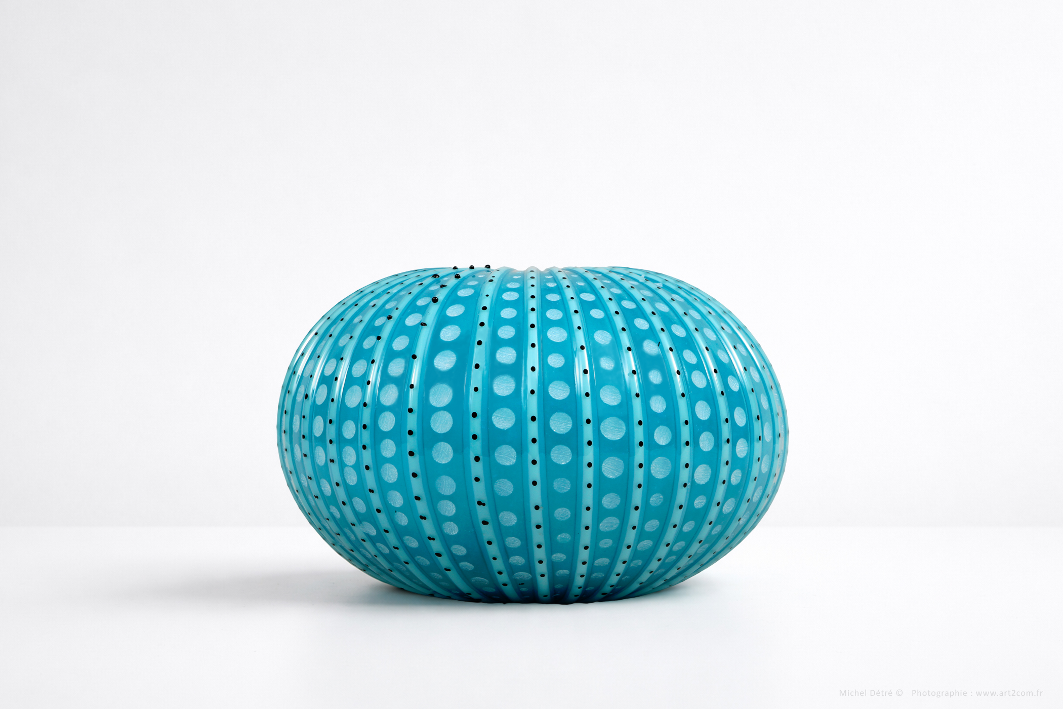 Oursin en verre noir et blanc Travaillé à froid à la roue